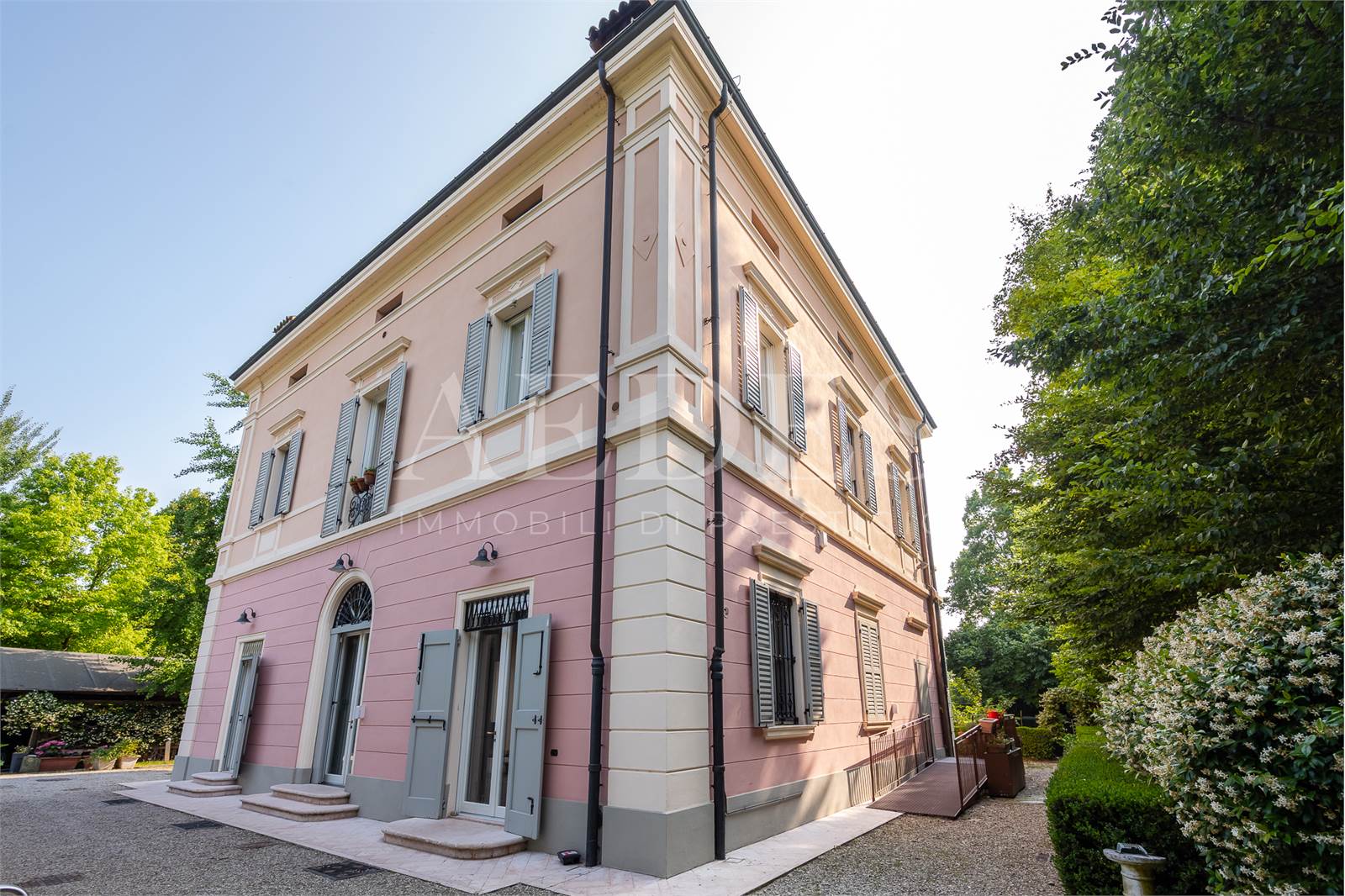 Modena Strada Gherbella: Immersa in un magnifico parco privato di 6.000 mq. impreziosito da importanti alberi secolari, proponiamo una splendida Villa storica con piscina composta da tre appartamenti oltre ad una dependance per gli ospiti. Al piano terra il primo appartamento, caratterizzato da ambienti ampi e luminosi, preziosi affreschi e pavimenti d’epoca riportati al loro antico splendore, è composto da un grande salone, cucina, sala da pranzo, bagno ospiti, suite matrimoniale con bagno e seconda camera da letto. Al piano superiore il secondo appartamento, elegantissimo e di charme parigino, è composto da salotto con balcone, sala da pranzo, spaziosa cucina, bagno ospiti, suite matrimoniale con stanza armadi e due bagni, seconda camera da letto con bagno. Al piano secondo la terza abitazione è composta da salotto, cucina, sala da pranzo, due camere da letto, un bagno e una zona lavanderia. Tutti i piani sono collegati anche da un comodissimo ascensore interno. Doppia autorimessa e tre posti auto coperti. La Villa coniuga in un raro ed affascinante equilibrio il prestigio e la memoria storica di un edificio nobiliare con le caratteristiche di una residenza contemporanea ed è la scelta ideale per chi sogna una dimora di rappresentanza, di grande fascino senza rinunciare alle più moderne comodità.